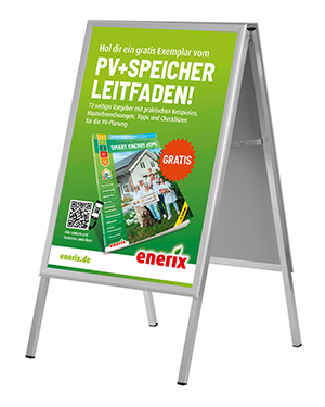 Max Muster von enerix Soundso zeigt wie er gemeinsam mit dem Grafikteam seinen Geschäftsstart mit Bravour und großen Erfolg gemeistert hat.